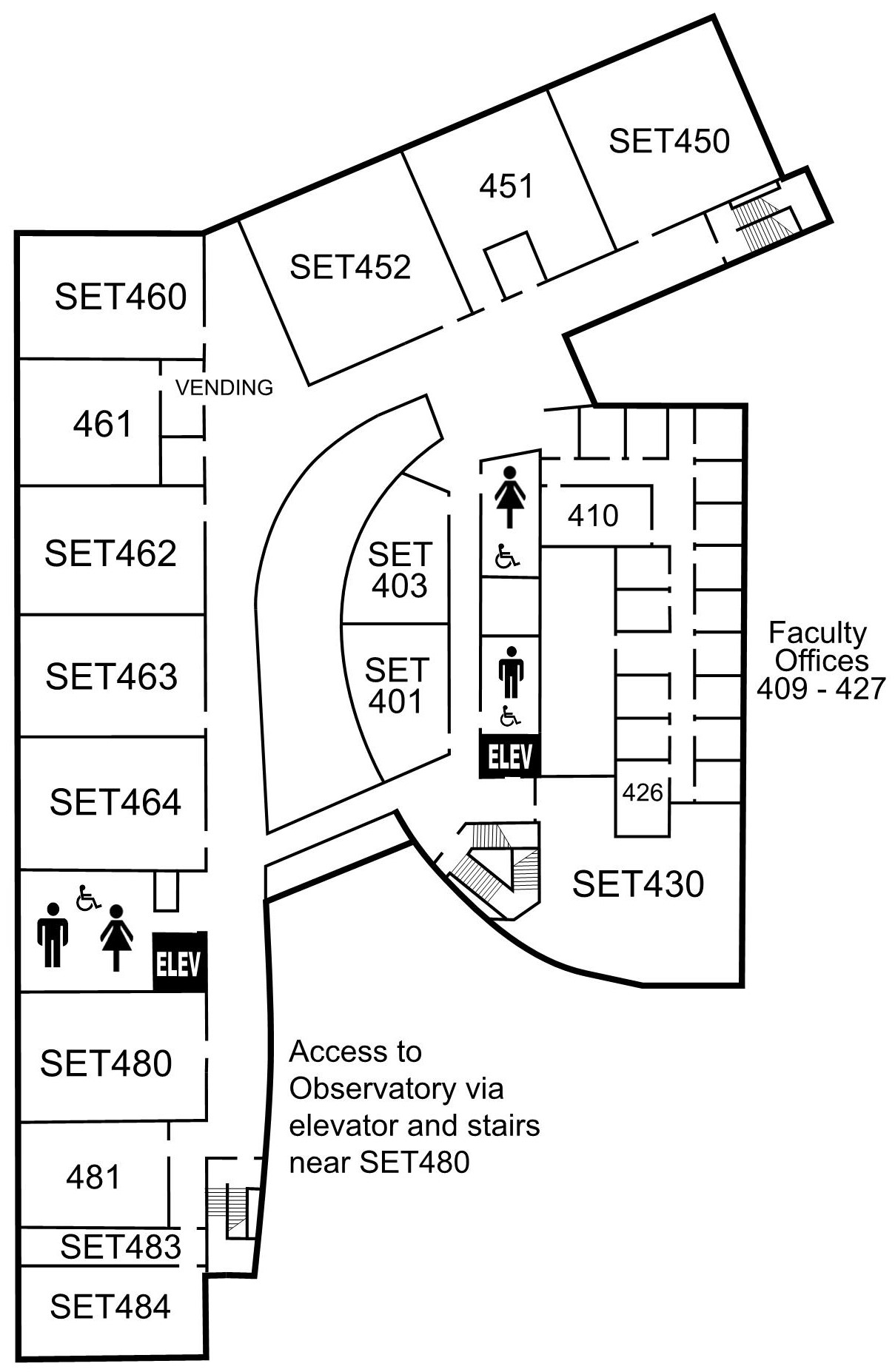 Business, Engineering, and Technology Division Office SET430 - If entering from the elevator that was to the right of the main entrance on the first floor, the division office is located on the immediate left when you step out of the elevator.