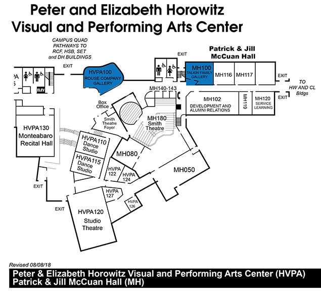 The Rouse Company Foundation Gallery is located in the Grand Hall HCC's Peter and Elizabeth Horowitz Visual and Performing Arts Center. The highly visible, glass-fronted gallery is often visited by patrons attending events presented in the Horowitz Center's three performance venues.