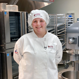 Klezer began in fall 2019 as a baking and pastries major but has since expanded her studies to include coursework in culinary and hospitality. “It’s going to make me more versatile for bigger jobs,” she says. “I love being able to pick up more skills in a short amount of time.”